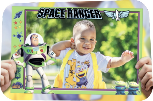 Strike a heroic pose for your Space Ranger ID card – printed to keep forever
